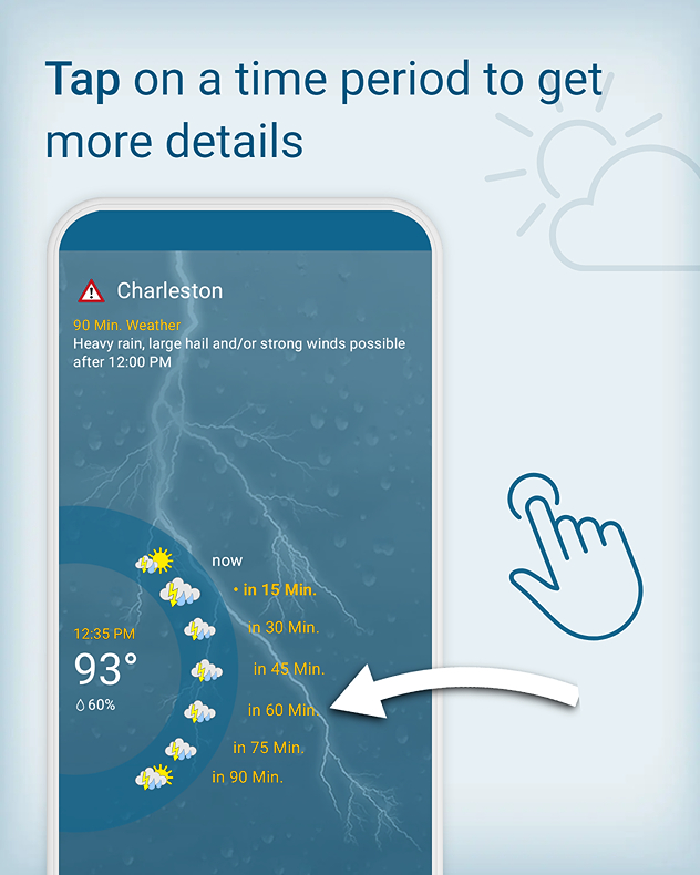 Need a forecast for every 15 minutes? We have a feature on the Weather & Radar app just for that. Get a quick breakdown every quarter of an hour and up to 90 minutes into the future, anywhere.