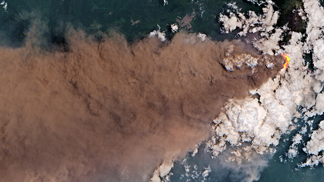 The eruption formed an ash cloud up to 37 miles high and more than 125 miles long, in addition to lava and pyroclastic flows.