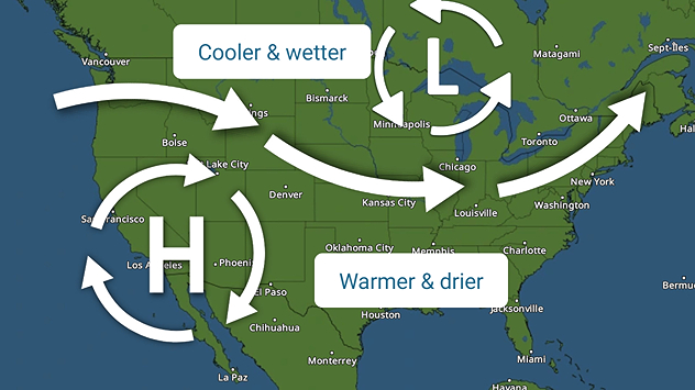 Today, the WeatherRadar shows the rain sticking to the Upper Great Lakes across Wisconsin and Michigan before reaching the lower Great Lakes states like Ohio, New York, and Pennsylvania by dinner time. The Midwest is getting a few showers this morning, but dry air is expected to take over, removing the chance for showers later today.