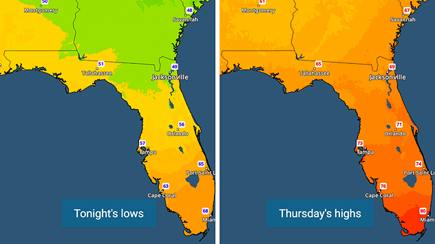 The rest of the U.S. will be quiet, with Florida having the warmest temperatures as high reach near 80 degrees in Miami. The West will be seasonably chilly with highs in the low to middle 50s in the big near coastal cities of California and the Northwest.