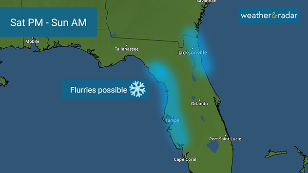 Flurries are possible Saturday night into Sunday morning along the western Florida Gulf Coast and possibly the Atlantic beaches of northeast Florida.