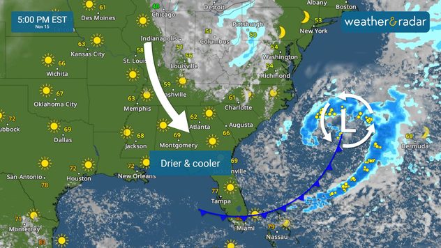 The nice weather continues across the Central Plains, with plenty of sunshine and comfortable temperatures. On Friday, scattered showers will affect the Appalachian mountains, and the clouds will stay put. This is all while the high-pressure system sinks in and allows the northern winds to bring a shot of cooler temperatures that will last through the weekend across the Southeast amidst much drier air.