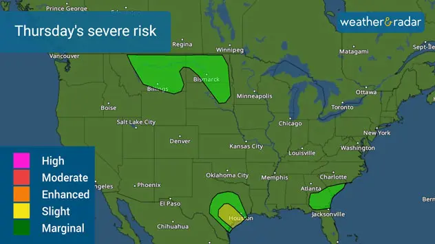 Damaging winds, tornadoes