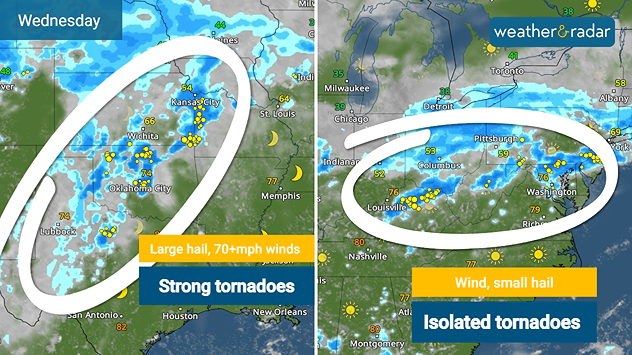 Cities such as Abilene, Texas, Oklahoma City, Wichita, Kan., and Kansas City, Mo., should be on alert for powerful storms, especially after sunset.