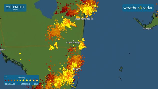 As of 4 p.m. EDT, thunderstorms affected portions of Coral Springs, Boca Raton, Pampano, and surrounding metropolitan areas. Residents can continue to track the storms and lightning using WeatherRadar. For a more comprehensive look at lightning, check out the LightningRadar.