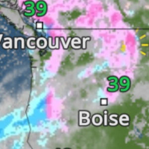 Rain and mountain snow on the way, time it out here.